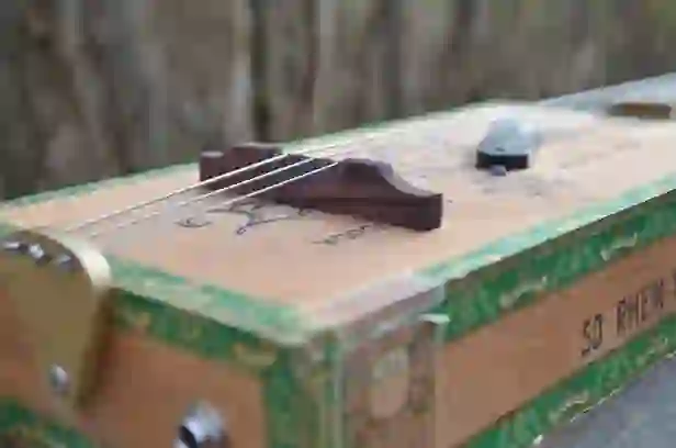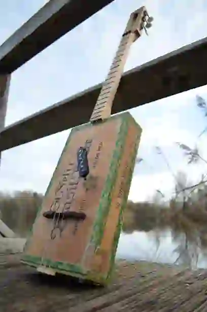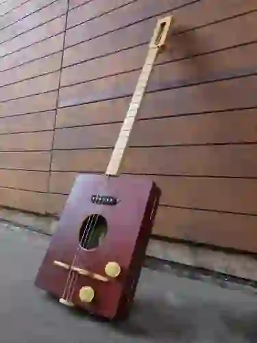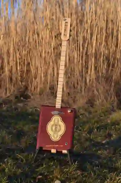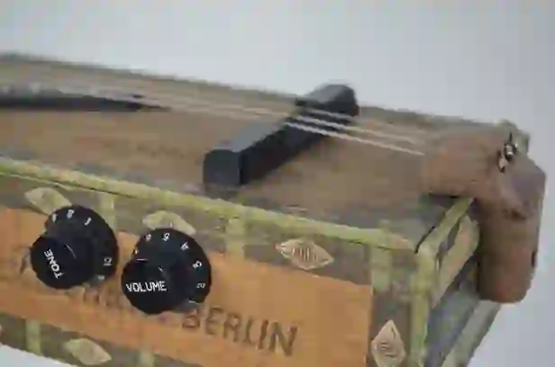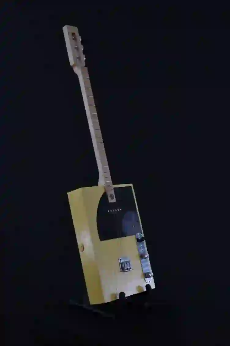 Mensur: 630 mm Halsholz: Ahorn, Tischplatte Tonabnehmer: Singlecoil + Piezo Schaltung: Tone-Poti + Volume-Poti + 3-Way-Switch, 2x Preamp Widmung: Bruce Springsteen Bestandteil meiner 5er Serie Cigar Box Guitars, die angelehnt an berühmte E-Gitarren und berühmte Gitarristen sind.