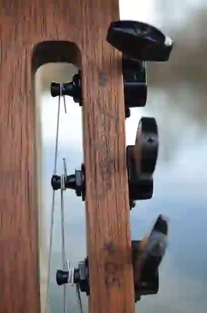 Mensur: 580 mm, frettless Halsholz: Esche, abgedunkelt Tonabnehmer: Piezo