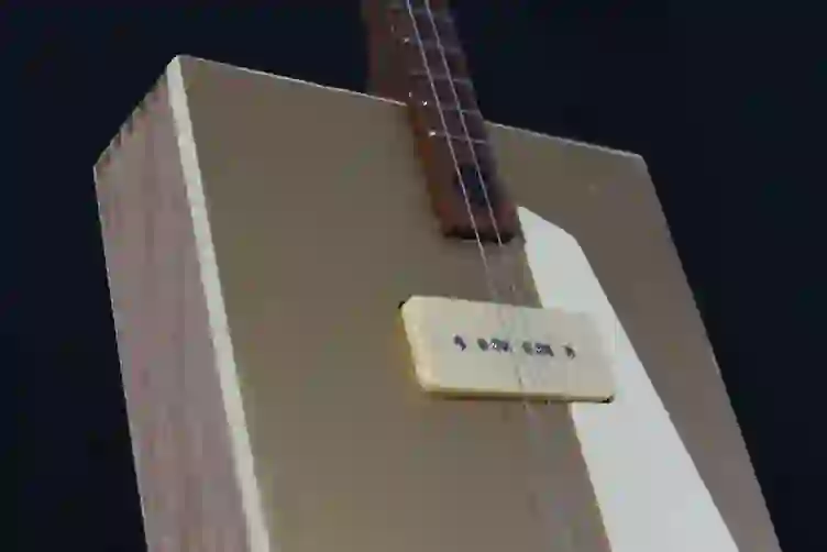 Mensur: 630 mm Halsholz: Mahagoni, Treppenstufe Tonabnehmer: P90 Schaltung: - Widmung: Sean Costello Bestandteil meiner 5er Serie Cigar Box Guitars, die angelehnt an berühmte E-Gitarren und berühmte Gitarristen sind.